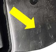 (charred) plastic particles will splay on the surface of a moulded